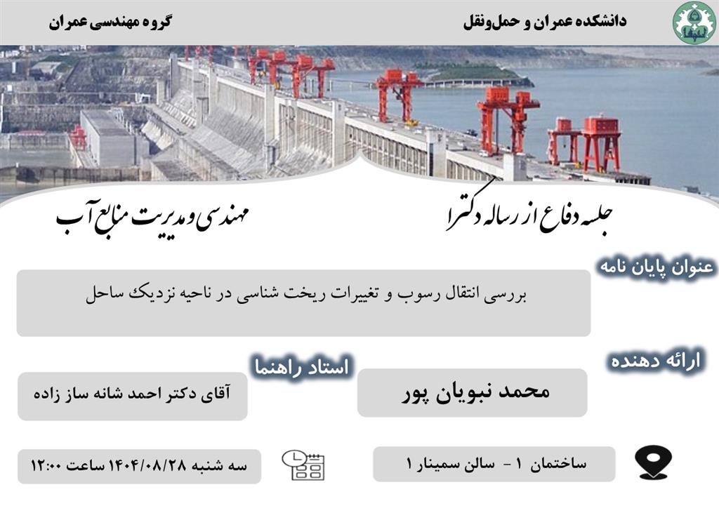 جلسه دفاع از رساله دکتری رشته: مهندسي عمران