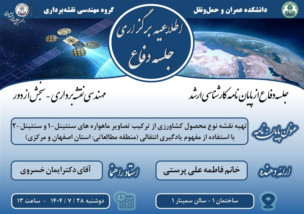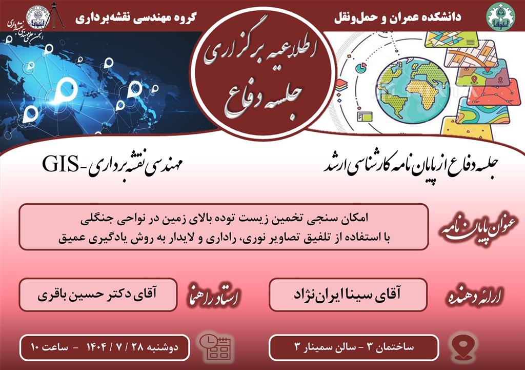 جلسه دفاع از پايان نامه كارشناسي ارشد رشته: مهندسي نقشه برداري- سيستم اطلاعات مكاني