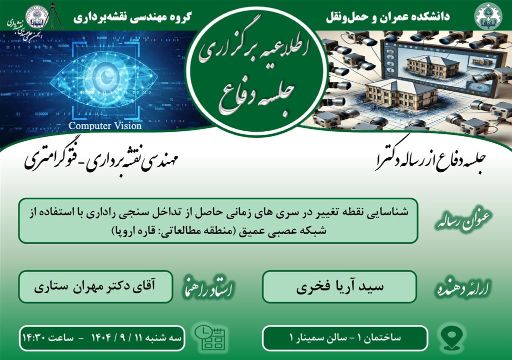 تاريخ:1404/06/03، ساعت:14:00-16:00،مكان جلسه:دانشكده حمل و نقل